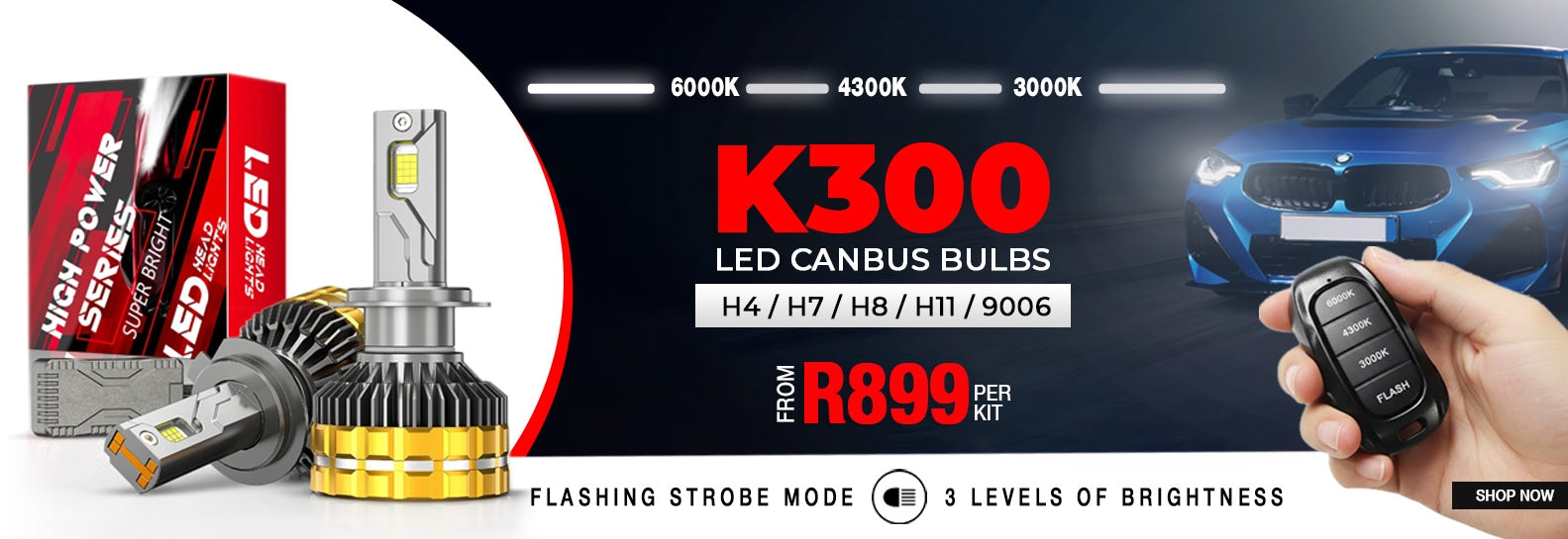 K300 LED Canbus Bulbs With Strobe Function & Wireless Remote - H7