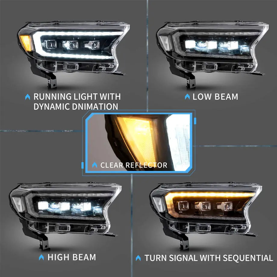 Suitable To Fit - Ranger T7 / T8 Bugatti Style DRL LED Projector Headlight (16-On)