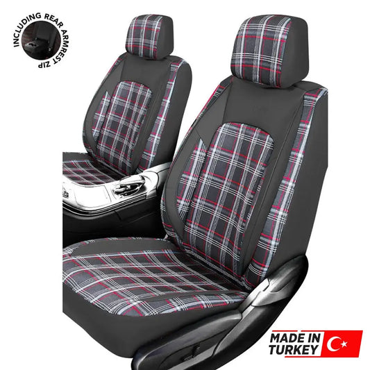 Universal GTI Tartan Fabric Car Seat Covers - Front & Rear Full Set (Black)